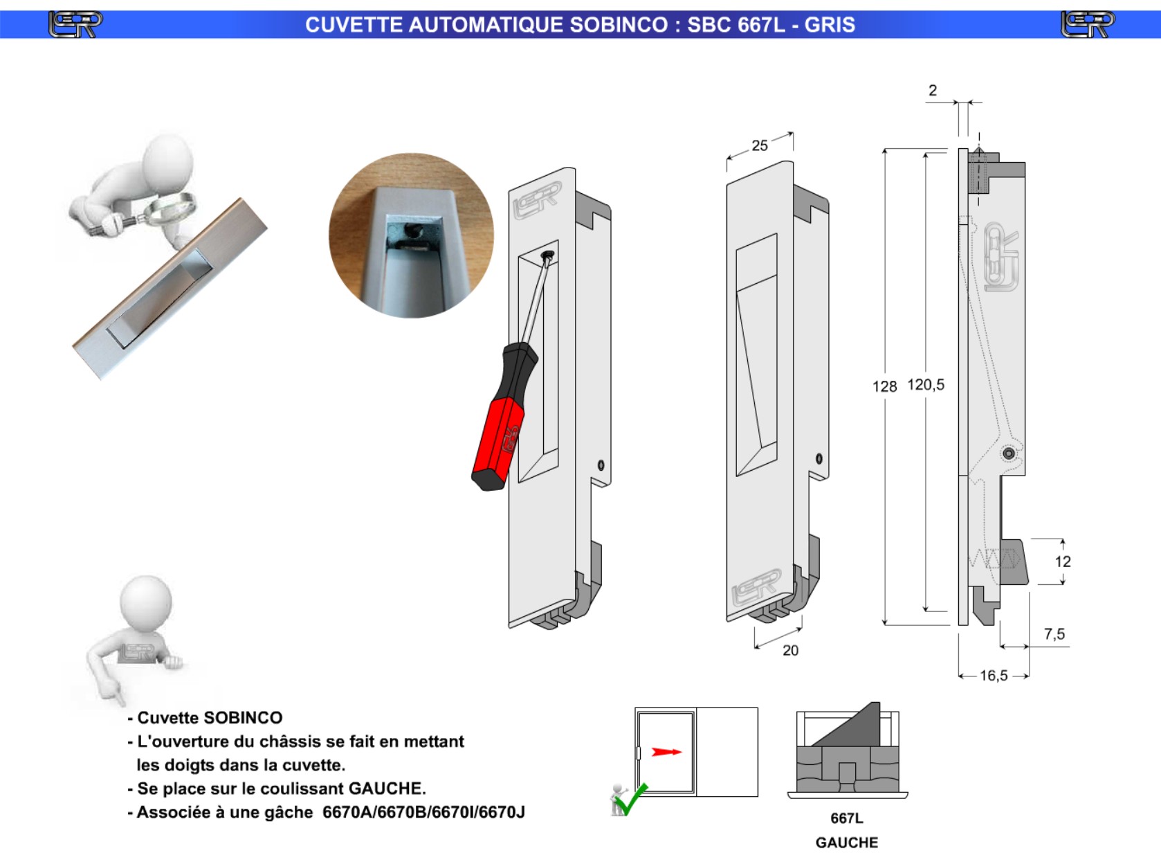 • Gâches associées : 6670A / 6670B / 6670I / 6670J.